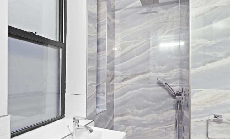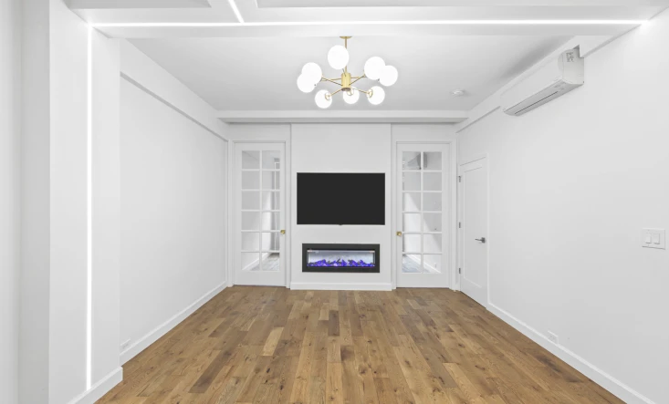 During the building phase, the renovation team faced unforeseen challenges with the layout, and the plans were adjusted. The architect and project management teams worked together to amend the drawings with the building board and the Department of Buildings. After the new layout was approved, a full apartment renovation included the removal and installation of all walls, bathroom and laundry room addition, and complete closet reconfiguration. Kitchen remodeling featured custom cabinetry, decorative wood island paneling, and a white marble countertop for a luxurious look. The bathroom renovation highlighted herringbone and onyx tiling for color accents. Additionally, the team replaced all hardwood floors throughout the apartment, installed new baseboards, painted all walls and ceilings, and built the new LED channel lighting with dimmer switches. In a matter of a few months, the Sacara family had a fully-remodeled home that expressed their style, vision, and improved functionality.